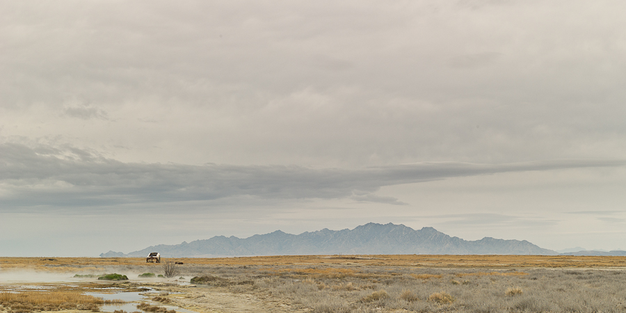 This past February 18th I joined up with the Utah Xterra Owners Club for their annual Pony Express run. Since moving to Utah this past summer and acquiring a 2006 Nissan Xterra I have been keen to get out and explore many of the canyons around Cache Valley. This past summer and fall the Utah Road and Recreation Atlas (Benchmark Maps) has been top on my reading list for finding new places to explore. One place I have been really interested in is the west desert area of Tooele, Juab and Millard counties. The area is also called the Great Salt Lake Desert and includes the Dugway Proving Grounds (no public access), The Pony Express Trail and a portion of the Historic Lincoln Highway. Plus it’s a really big wide open place with small mountains that look like islands and has tons of potential for photography. If that wasn’t enough my long standing project about looking at the west has up to this point primarily consisted of images showing how we experience the west through visiting National Parks. Joining up with an automobile club would be both fun and new way to think about how we experience the western landscape and meet some fellow Xterra owners.